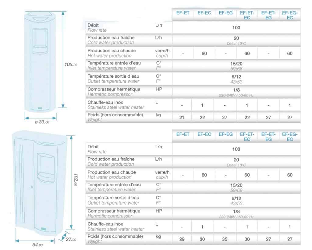 – Circuits de réfrigération et de distribution d’eau indépendants