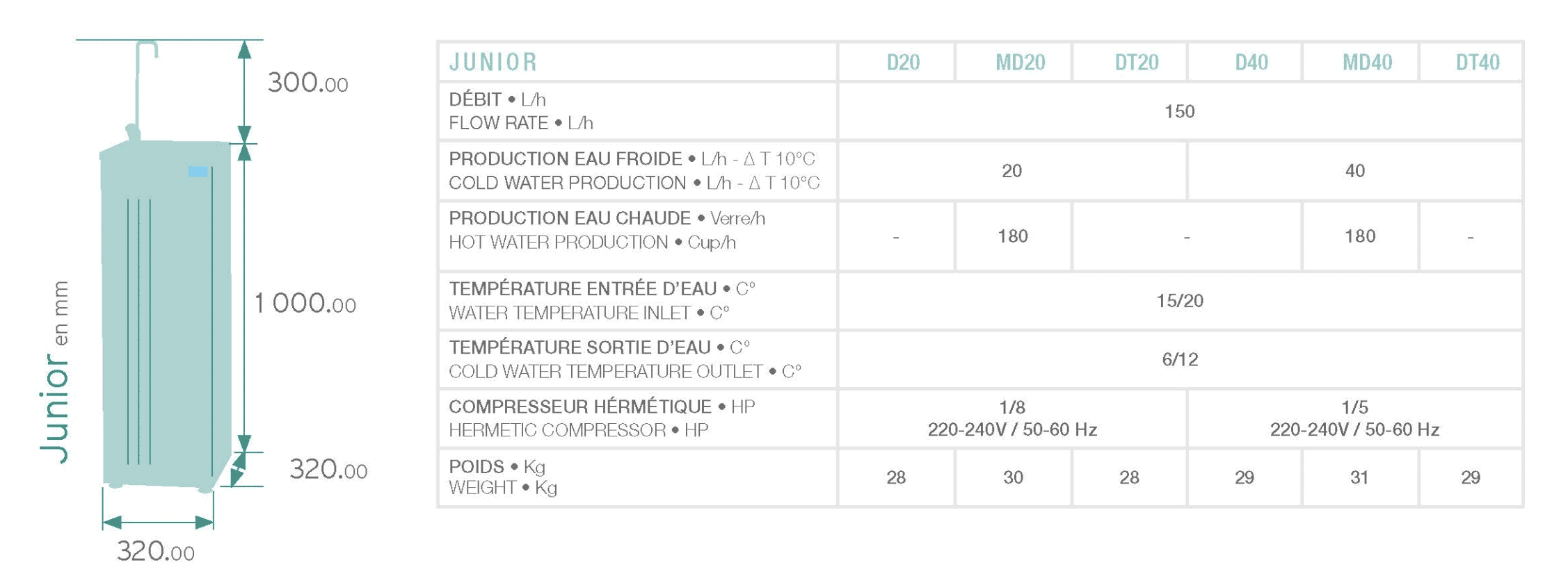 Capacité de production d’eau fraîche de 20 L/h à 40 L/h