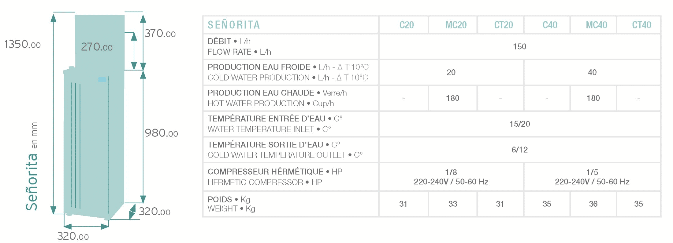 Capacité de production d’eau fraîche de 20 L/h à 40 L/h